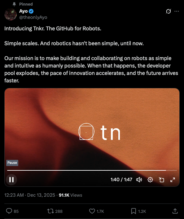 If you're building robots and want to try it, head to tnkr.ai. No waitlist, no gatekeeping.